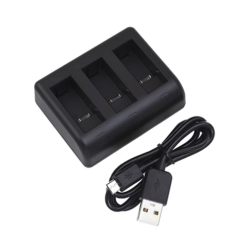 Ladegerät zum Laden des GoPro-Akkus AHDBT901. Es können gleichzeitig 3 Akkus geladen werden. Lieferumfang: Ladegerät. USB-Kabel. Garantie: 12 Monate.
